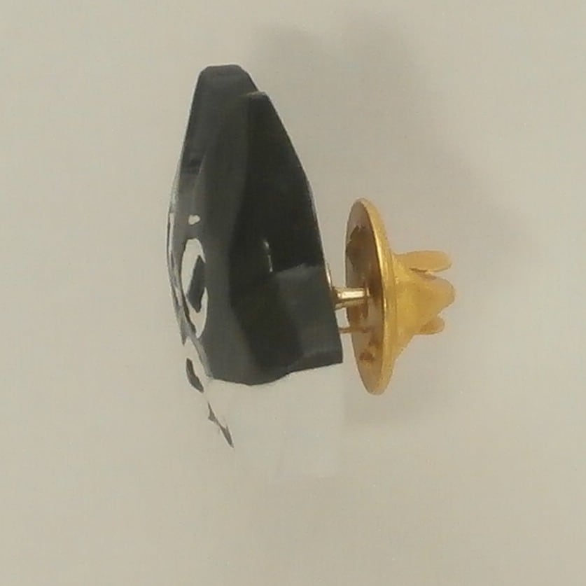 material:木材、アクリルペイント、ニス仕上げ、ピンバッチ金具