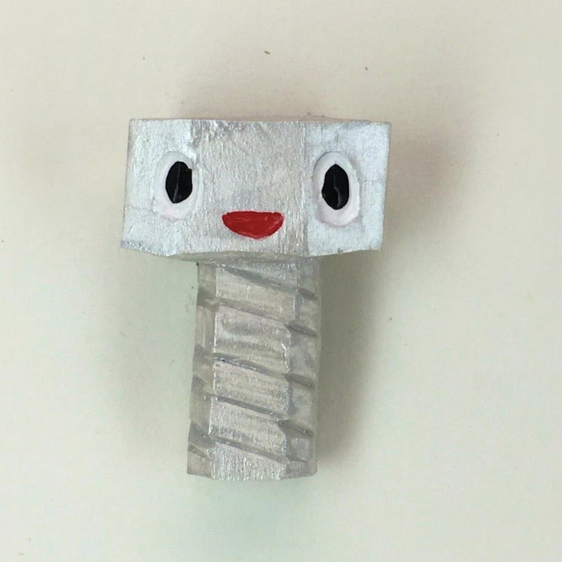 material:米ヒバ材、アクリルペイント、ニス仕上げ、バッチ金具、台紙付き袋入り