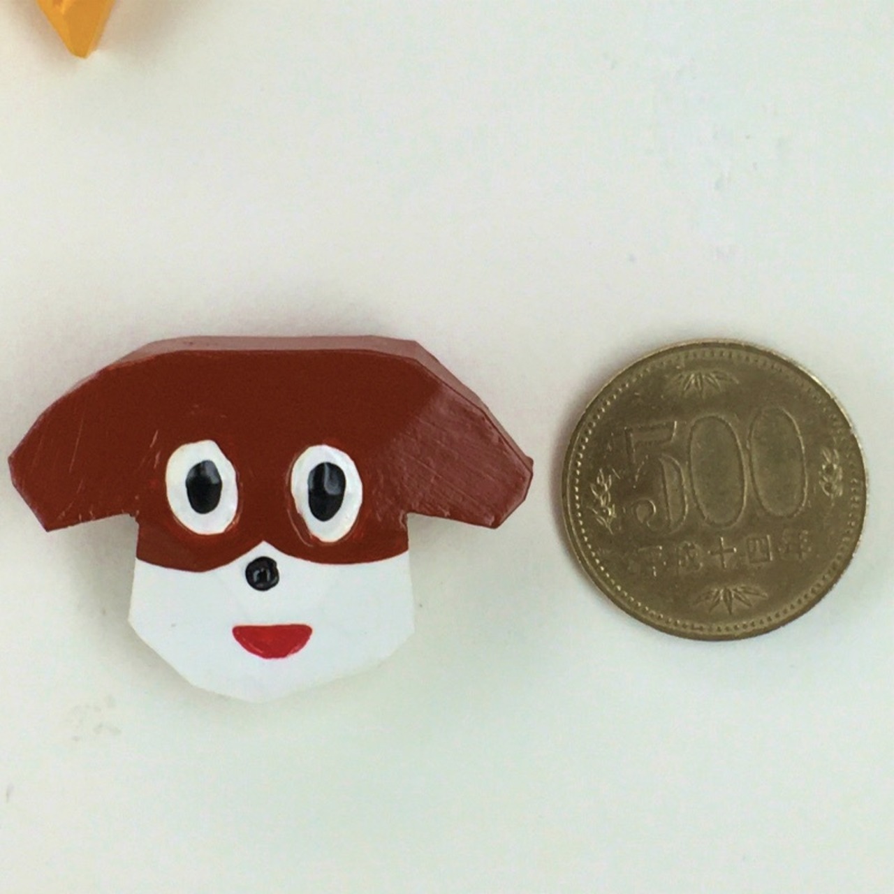 material:米ヒバ材、アクリルペイント、ニス仕上げ、バッチ金具、台紙付き袋入り