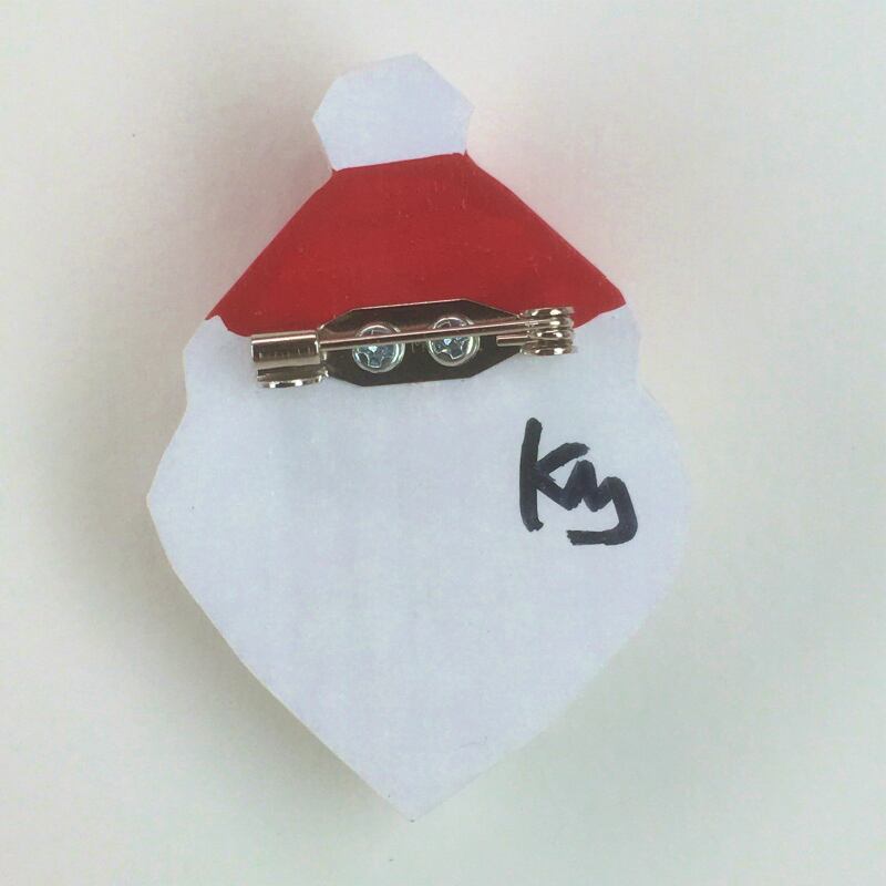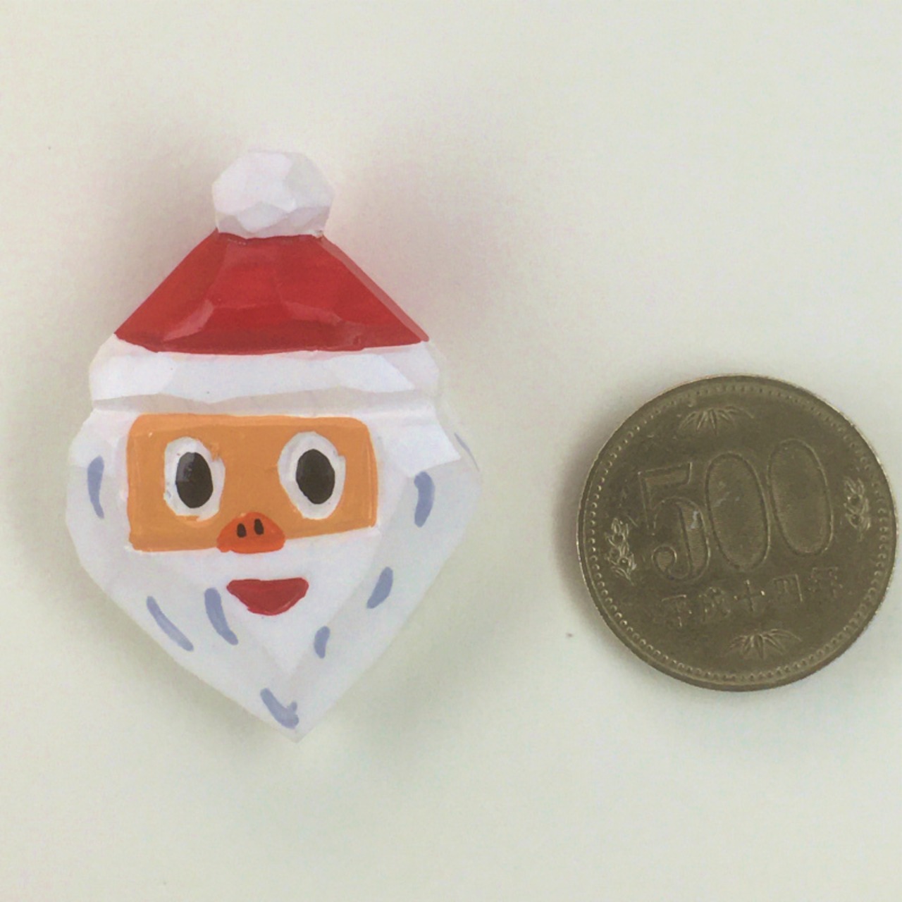 material:米ヒバ材、アクリルペイント、ニス仕上げ、バッチ金具、台紙付き袋入り