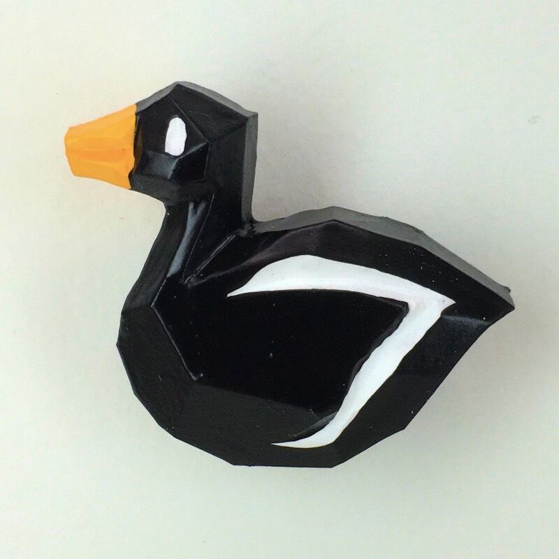 material:米ヒバ材、アクリルペイント、ニス仕上げ、バッチ金具、台紙付き袋入り