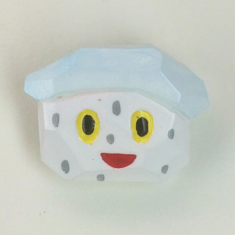 material:米ヒバ材、アクリルペイント、ニス仕上げ、バッチ金具、台紙付き袋入り