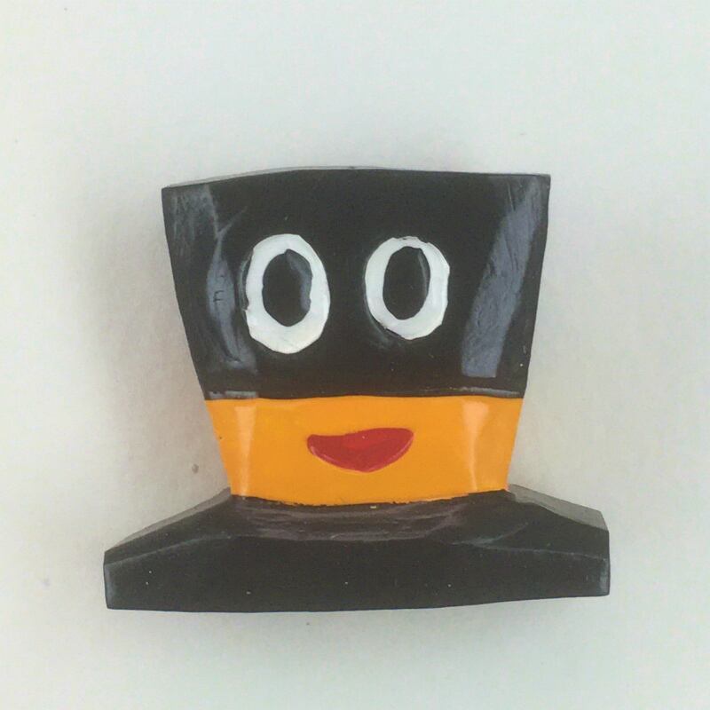 material:米ヒバ材、アクリルペイント、ニス仕上げ、バッチ金具、台紙付き袋入り