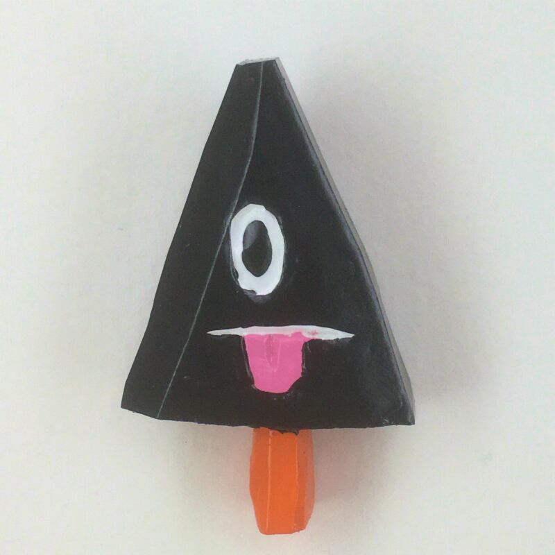 material:米ヒバ材、アクリルペイント、ニス仕上げ、バッチ金具、台紙付き袋入り
