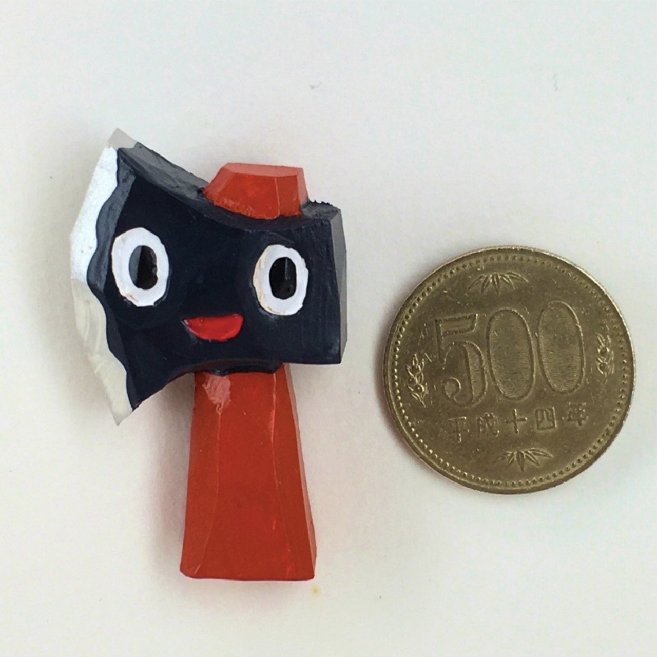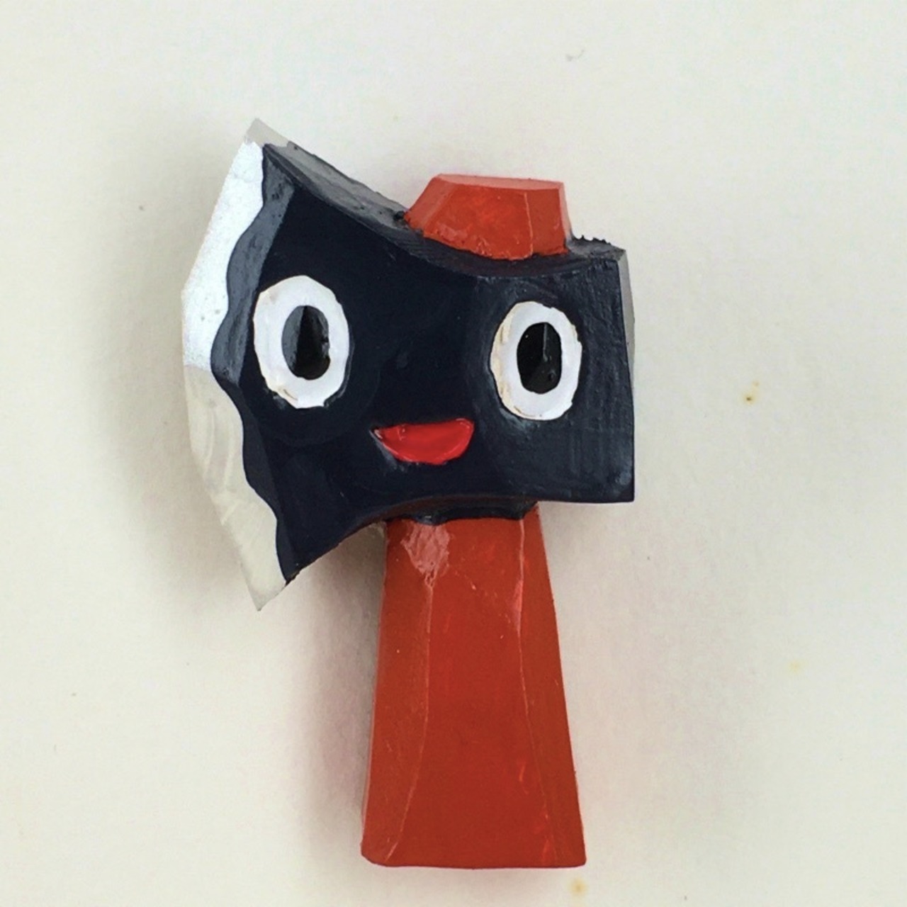 material:米ヒバ材、アクリルペイント、ニス仕上げ、バッチ金具、台紙付き袋入り