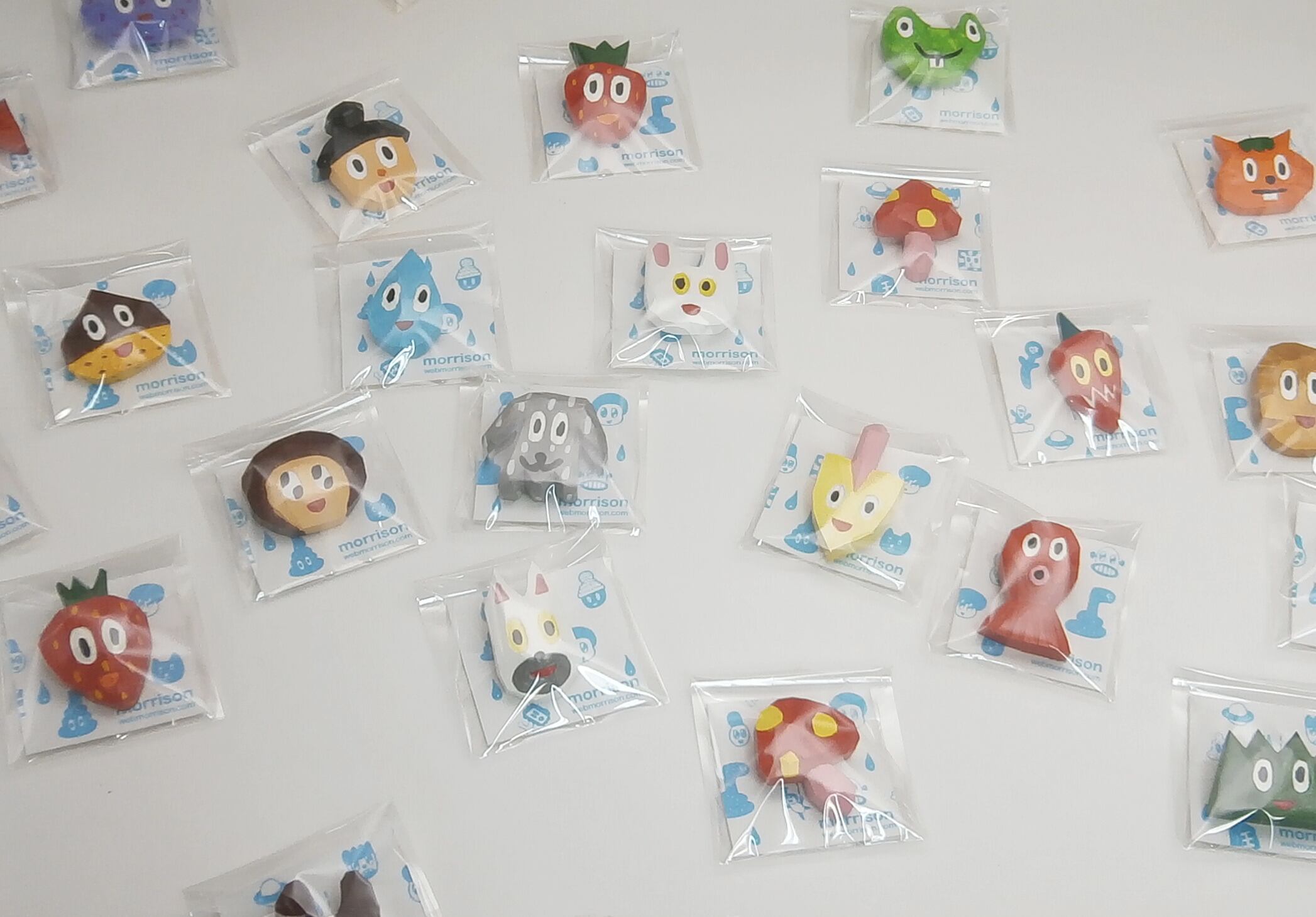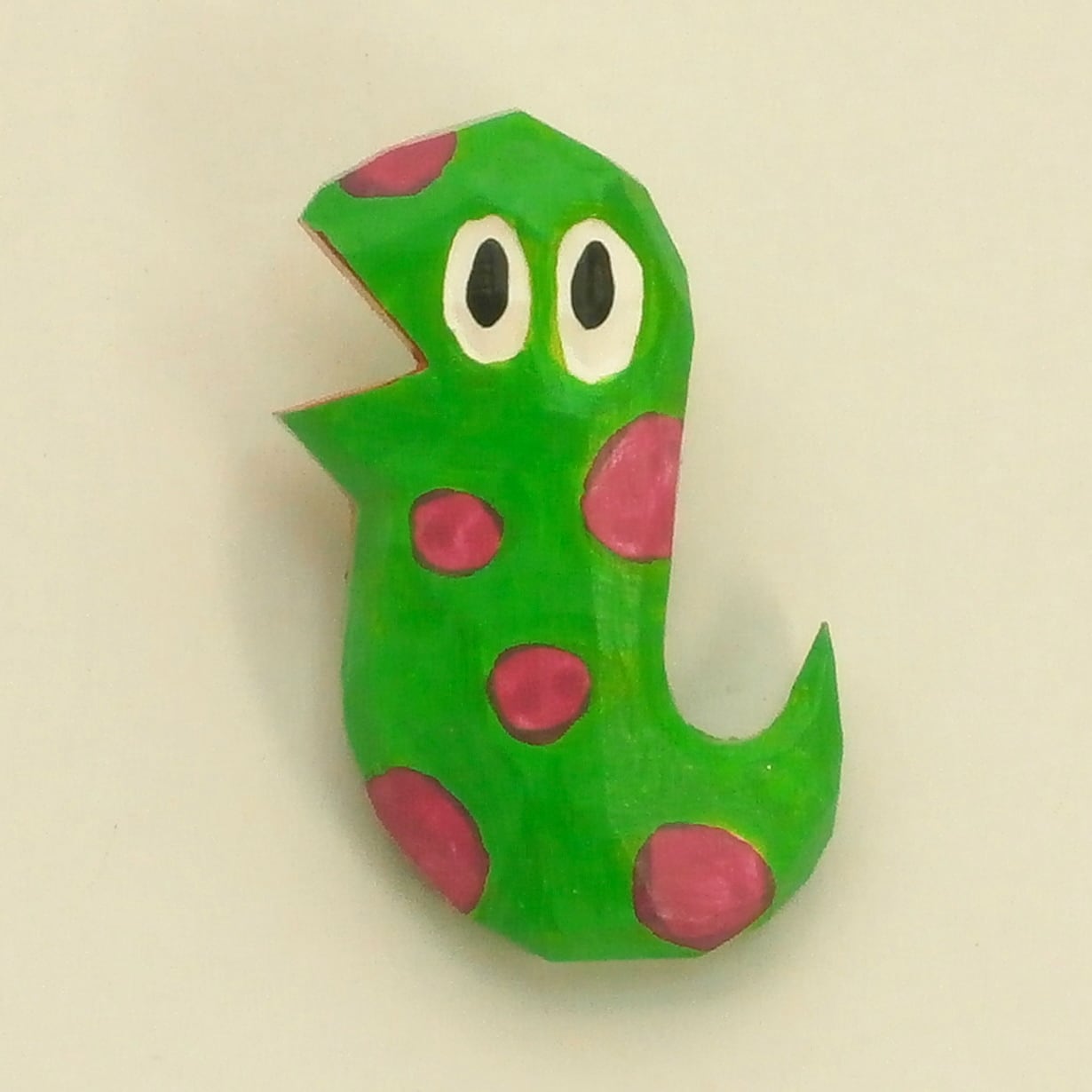material:米ヒバ材、アクリルペイント、ニス仕上げ、バッチ金具、台紙付き袋入り
