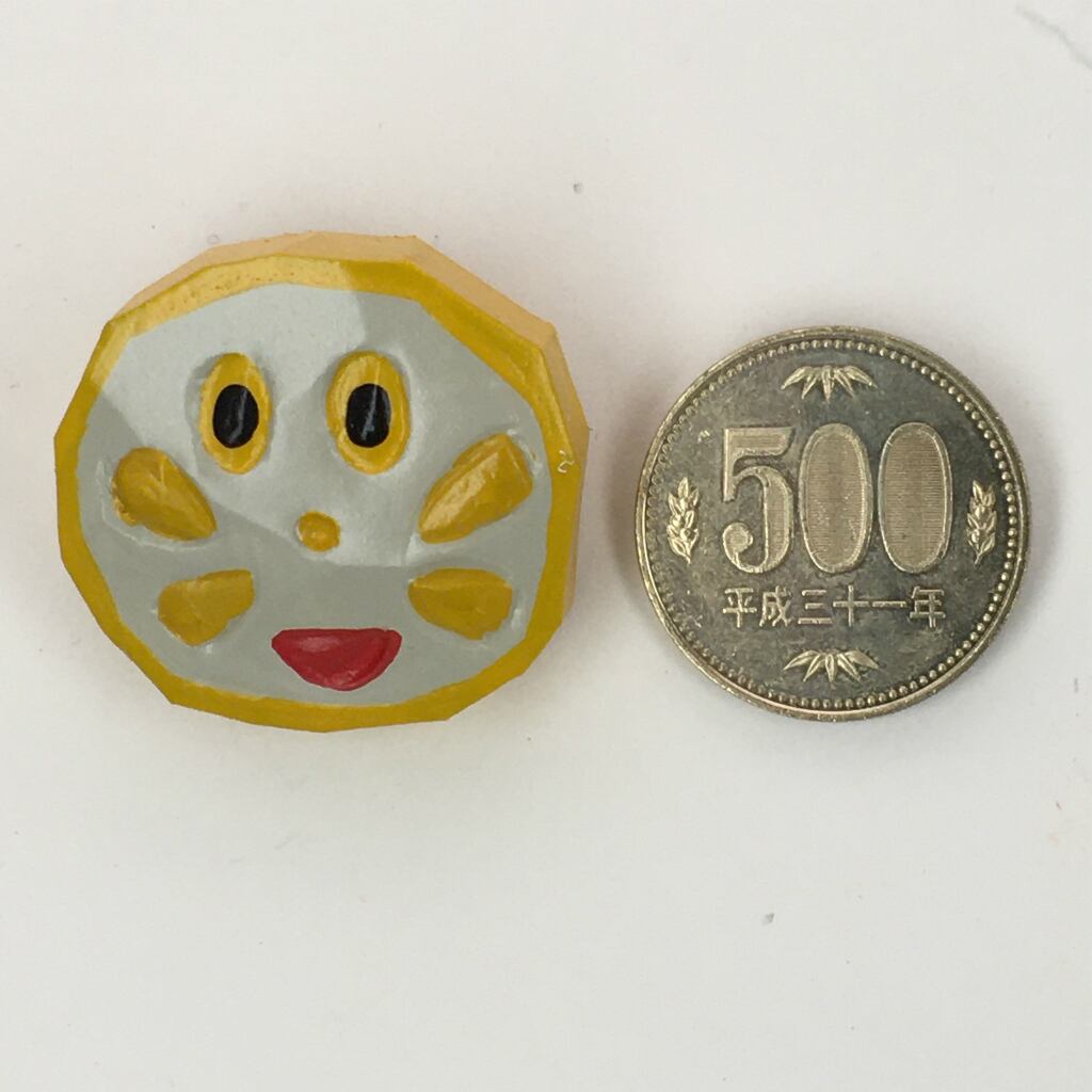 material:米ヒバ材、アクリルペイント、ニス仕上げ、バッチ金具、台紙付き袋入り