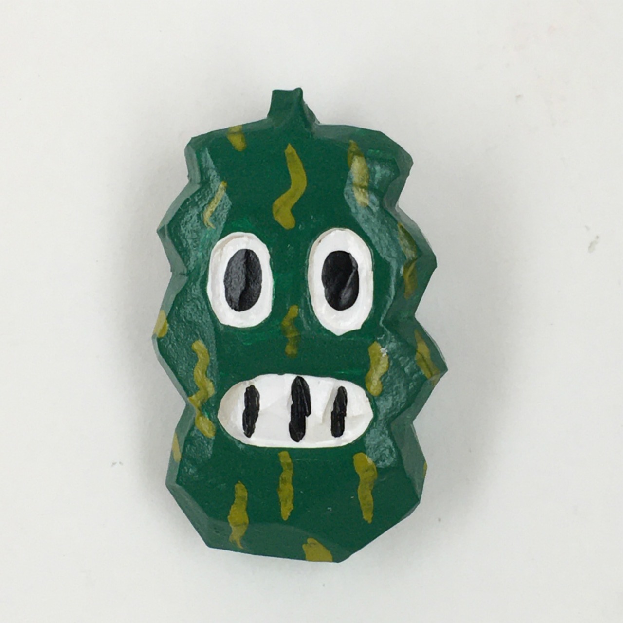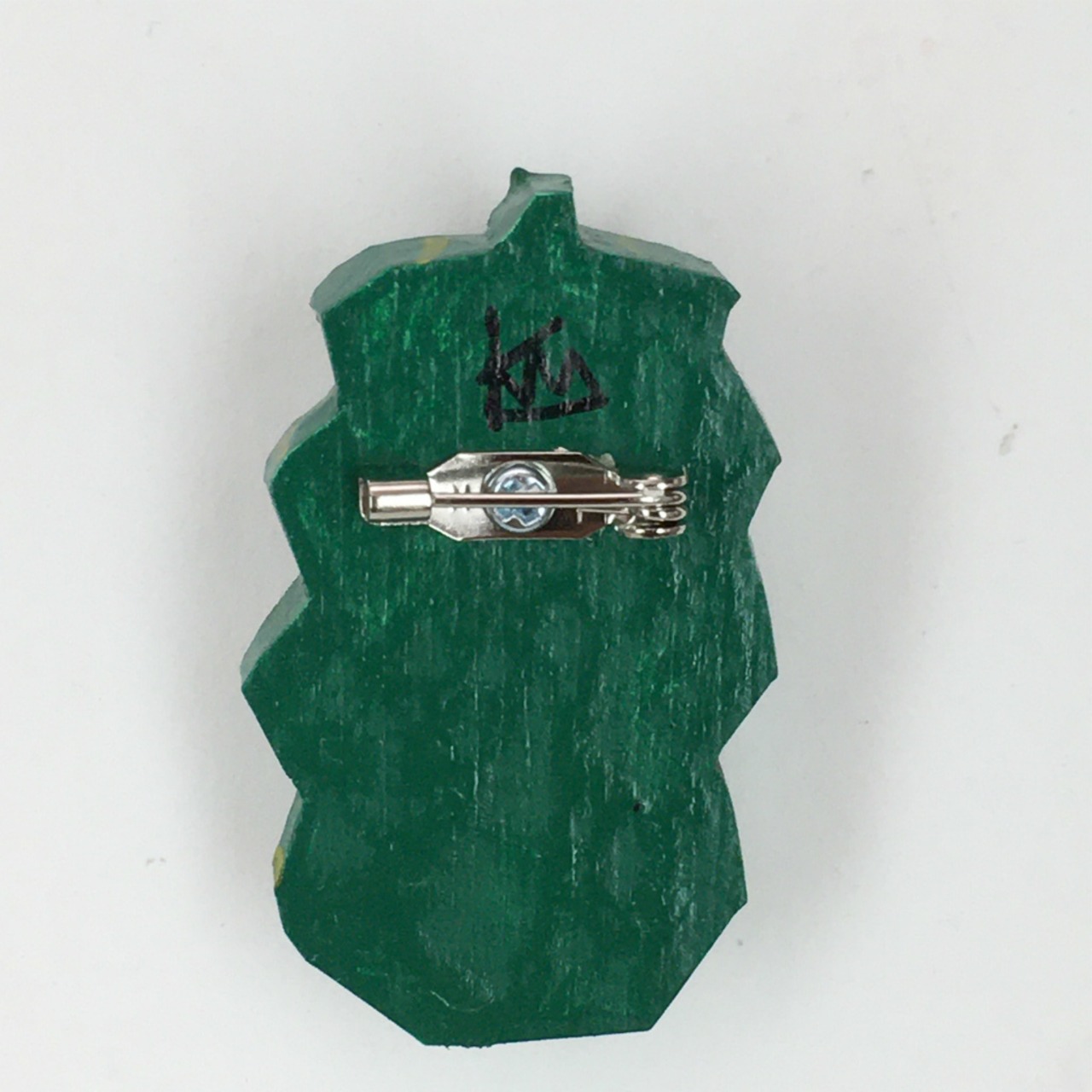 material:米ヒバ材、アクリルペイント、ニス仕上げ、バッチ金具、台紙付き袋入り
