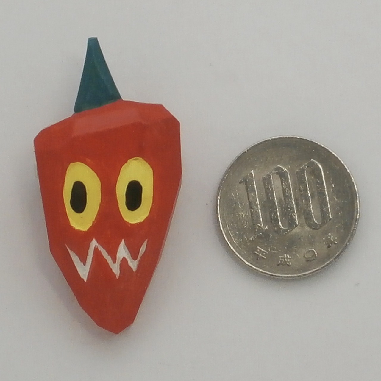 material:米ヒバ材、アクリルペイント、ニス仕上げ、バッチ金具、台紙付き袋入り