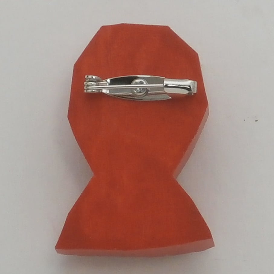material:米ヒバ材、アクリルペイント、ニス仕上げ、バッチ金具、台紙付き袋入り