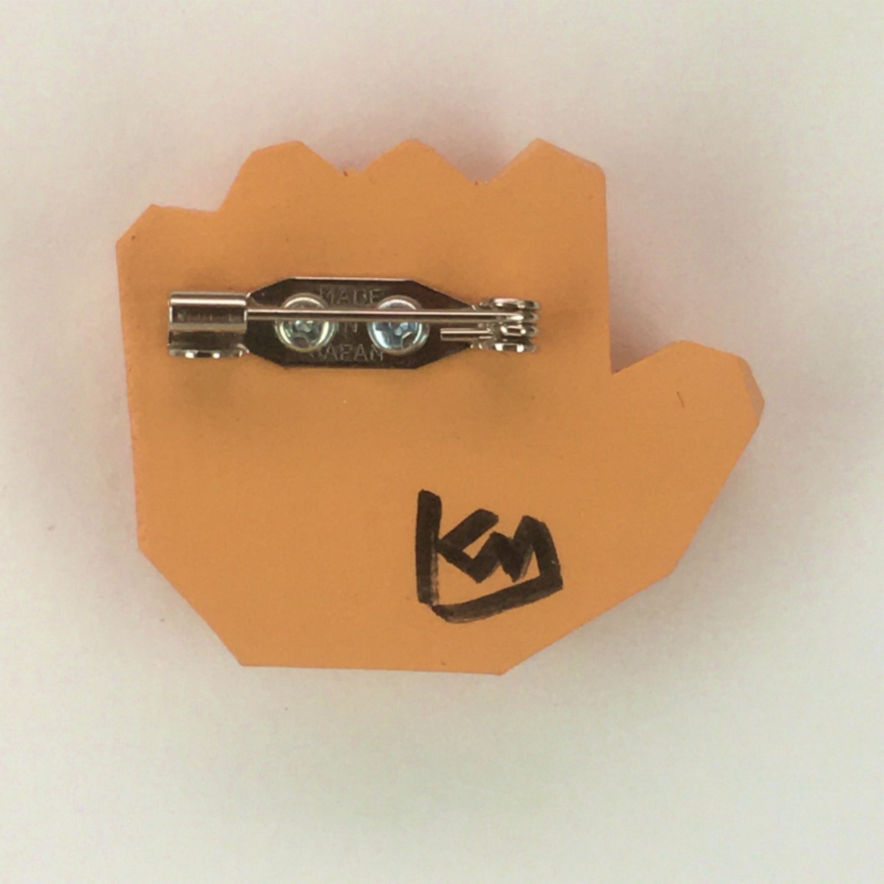 material:米ヒバ材、アクリルペイント、ニス仕上げ、バッチ金具、台紙付き袋入り